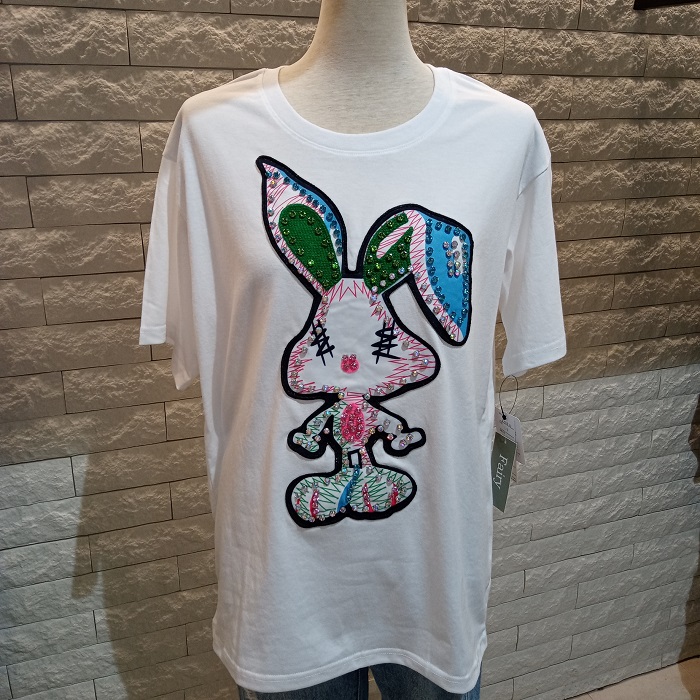 Riana ビーズ付きウサギワッペンTシャツ